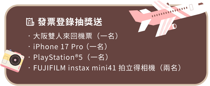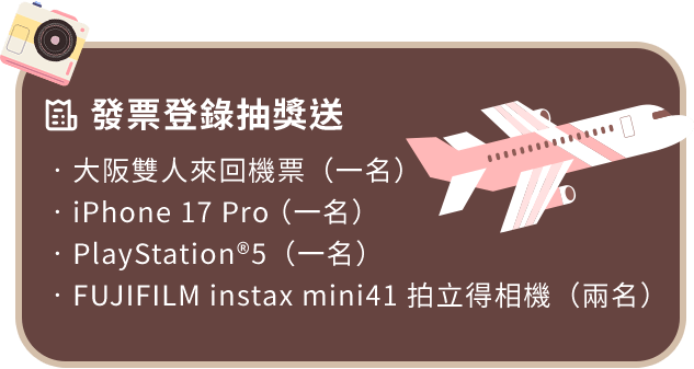 活動期間,單筆發票購買指定明治品項任兩款,於活動網站登錄發票,即可抽大阪雙人來回機票、iPhone 17 Pro等,多項好禮等你來拿!