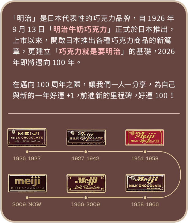- 所有中獎者須自行至通知連結下載、列印並填具「中獎回函文件」,並須於2026/02/13(五)前以掛號寄回(以郵戳為憑,回函文件以中獎通知函公告內文為主),郵寄地址為「台北市松山區復興北路367號7樓 艾迪英特股份有限公司《吃下meiji祝福連連》活動小組收」。經主辦單位驗證無誤後,各獎項將於2026/03/20(五)前寄出。若獎品寄出後因資料錯誤或無人簽收而退件,主辦單位將不再重新寄送,並視同放棄中獎資格。